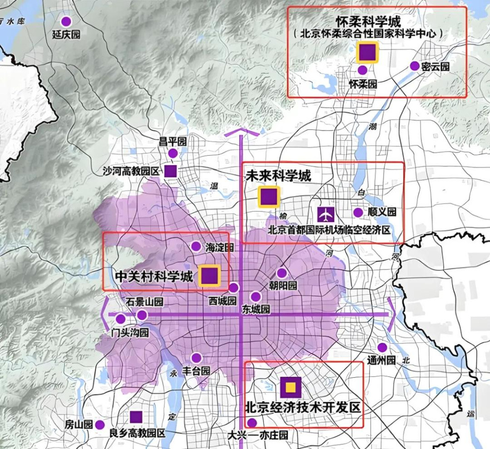 为了能够把北京打造成为真正的“国际科创中心城市”,北京未来五年的发展重心主要在“三城一区”:中关村科学城+未来科学城+怀柔科学城+亦庄经开区。
