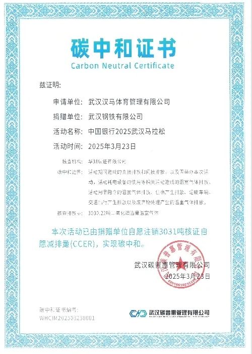 中国银行2025武汉马拉松碳中和证书