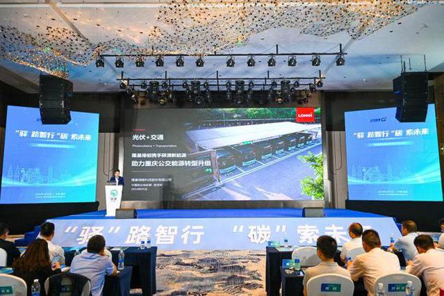 隆基绿能中国政企地区部高级产品经理岳词华以《隆基绿能携手驿满新能源助力重庆公交能源转型升级》为题发言。重庆驿满新能源科技有限公司供图
