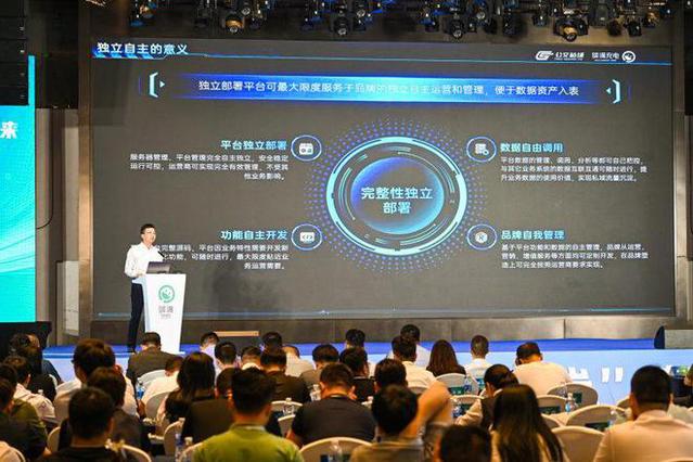 数据研发中心主任王利鹏以《从独立自主走向数字赋能》为题发言。重庆驿满新能源科技有限公司供图