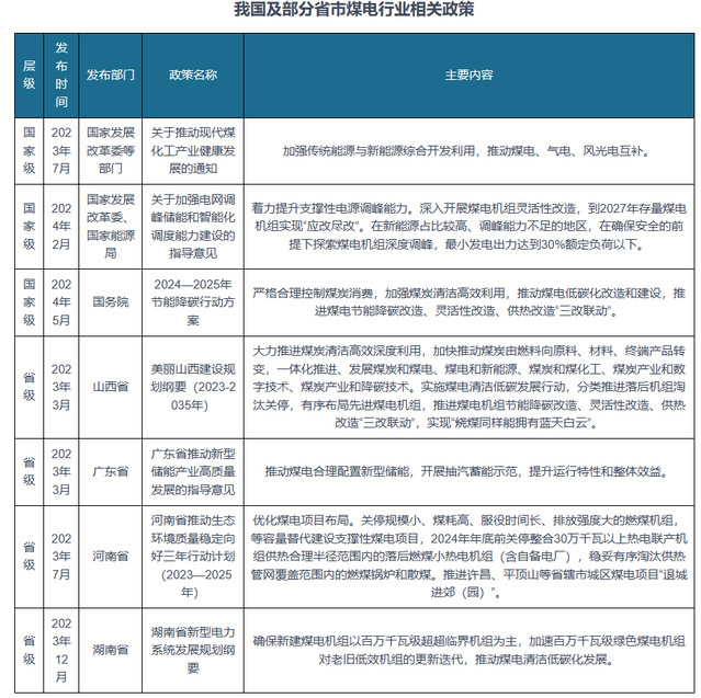 政策方面,为推动煤电低碳化发展,我国及部分省市发布了多项行业政策,如2024年国务院发布的《2024—2025年节能降碳行动方案》提出严格合理控制煤炭消费,加强煤炭清洁高效利用,推动煤电低碳化改造和建设,推进煤电节能降碳改造、灵活性改造、供热改造“三改联动”。