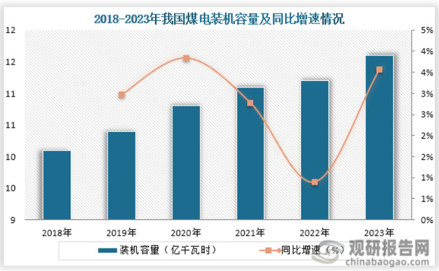 煤电是我国最重要的发电方式,占我国发量总量的60%以上,而在“双碳”目标下,我国提出严控煤电项目,推动煤电低碳化发展,我国煤电装机容量保持低位增长趋势。数据显示,从2018年到2023年我国煤电装机容量从10.1亿千瓦增长到了11.6亿千瓦,仅净增了1.5亿千瓦。