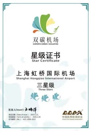 2022年度“双碳机场”评价授星仪式与虹桥机场获奖证书