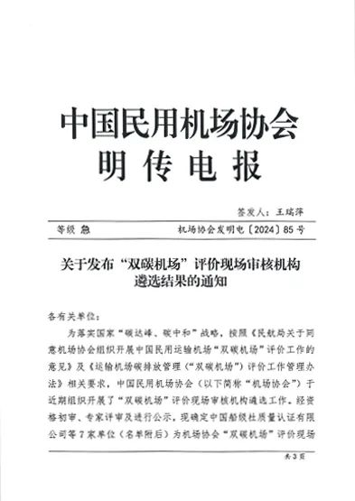 近日,中国民用机场协会发布了 “双碳机场”评价现场审核机构遴选结果的通知,集团下属上海市建筑科学研究院有限公司正式入选中国民用机场协会“双碳机场”评价现场审核机构。