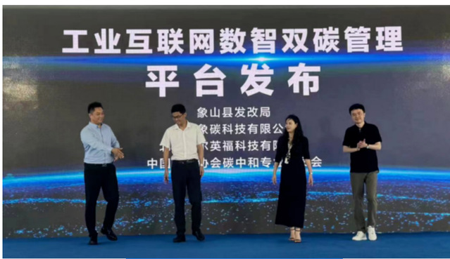 “工业互联网数智双碳管理平台”由象山县发改局局长朱约余、泰尔英福业务发展部总经理车涵、宁波象碳科技有限公司董事长张巧敏、中国节能协会碳中和专业委员会创新发展部部长张京良共同发布。