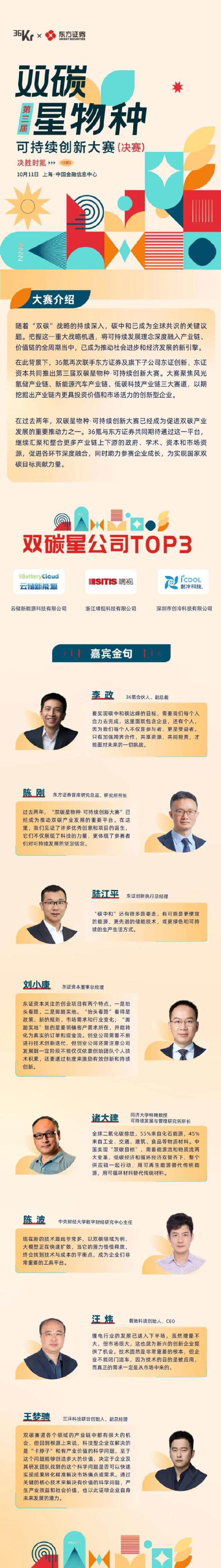随着2024年度Top3强最终诞生,36氪与东方证券及旗下子公司东证创新、东证资本共同举办的第三届双碳星物种·可持续创新大赛已走完全程,圆满落幕。