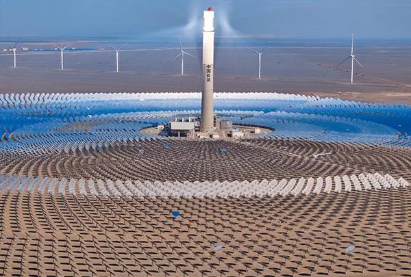 位于新疆哈密市伊吾县淖毛湖镇的国家光热示范项目——熔盐塔式50兆瓦光热发电站(2024年9月12日摄) 胡虎虎摄/本刊