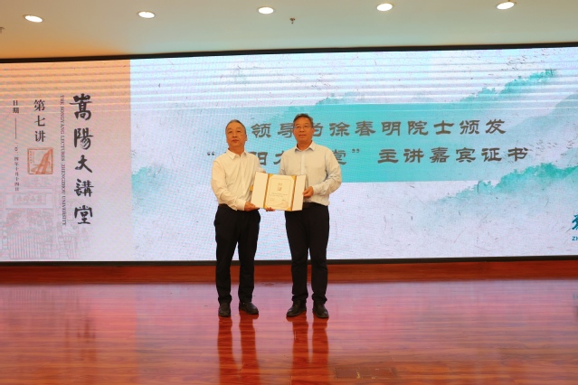 刘春太为徐春明院士颁发“嵩阳大讲堂”主讲嘉宾证书