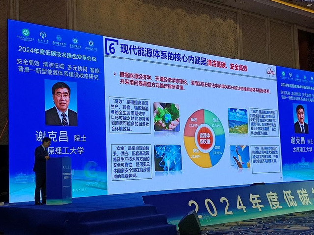 在接下来的主旨报告中,中国工程院院士、能源化工专家谢克昌教授围绕《安全高效、清洁低碳、多元协同、智能普惠——新型能源体系建设战略研究》报告提出,应立足国情推进新型能源体系建设。他从煤炭、油气、非化石能源在新型能源体系中的定位,介绍了新型能源体系的建设思路和目标。