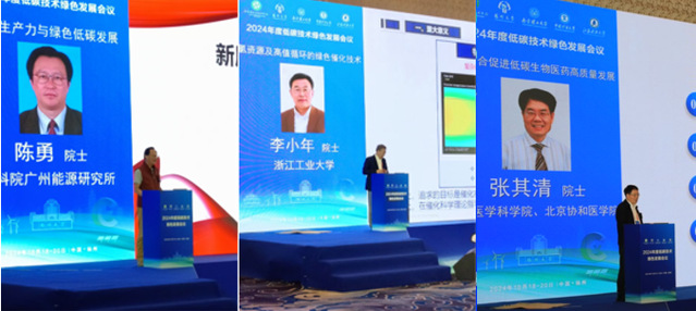 陈勇院士、李小年院士、张其清院士分别从绿色新质生产力、氯资源绿色催化、低碳生物医药等方面进行了大会现场报告;黄维院士则以柔性电子为主题,通过线上的方式进行了大会报告;马紫峰教授和刘生忠教授分别以钠离子电池储能和钙钛矿光伏为主题进行了大会报告。各位主旨报告专家立足于国家“双碳”发展战略、结合自身多年的研究积累,以高屋建瓴的战略眼光、深入浅出的讲解方式,向各位参会人员呈现了精彩纷呈、内容丰富,而又内涵深刻、站位高远的学术“盛宴”。大会现场气氛热烈!