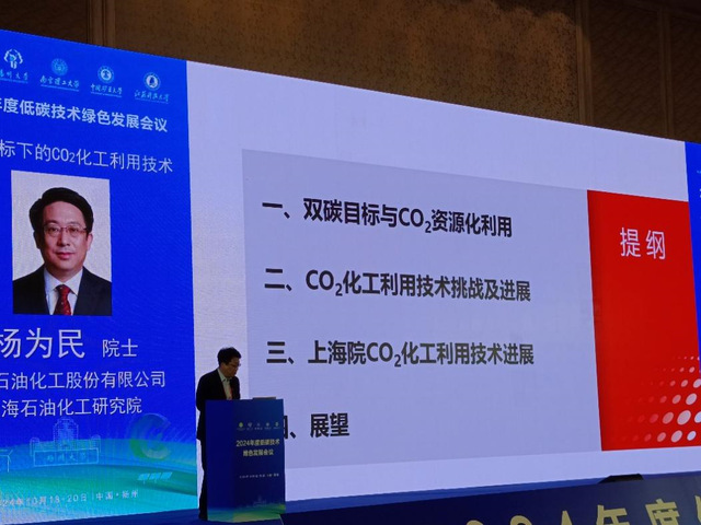 中国工程院院士、有机化学专家杨为民教授作《双碳目标下的CO2化工利用技术》报告提出,CO2规模化化工利用是实现双碳目标的重要途径,且CO2有望成为未来石化工业重要的新型碳资源。他还介绍了CO2加氢制甲醇、CO2多相催化酯化制高纯电子级碳酸乙烯酯等几项具体技术。