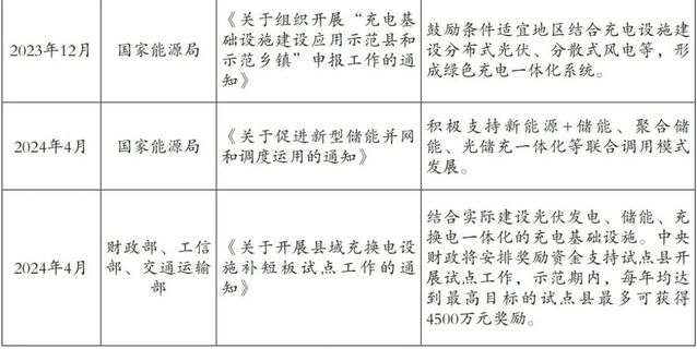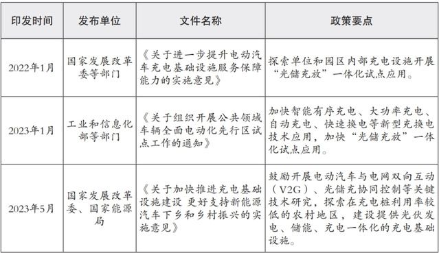 在国家层面,2020年10月,国务院办公厅印发的《新能源汽车产业发展规划(2021—2035年)》明确,鼓励“光储充放”(分布式光伏发电—储能系统—充放电)多功能综合一体站建设。支持有条件的地区开展燃料电池汽车商业化示范运行。2023年6月,国务院办公厅印发《关于进一步构建高质量充电基础设施体系的指导意见》,提出加快推进快速充换电、大功率充电、智能有序充电、无线充电、光储充协同控制等技术研究,持续优化电动汽车电池技术性能。多个部门也相继出台光储充一体化电站相关政策。