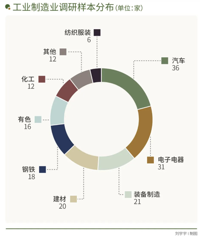 本年度调研,按照营业规模和行业影响力,筛选了工业制造业样本企业172家,覆盖了钢铁、有色、建材、汽车、纺织服装、化工、机械制造、电子电器和其他代表性企业,共计9个小类;按企业性质划分,覆盖了144家中国企业和28家外资在华企业。