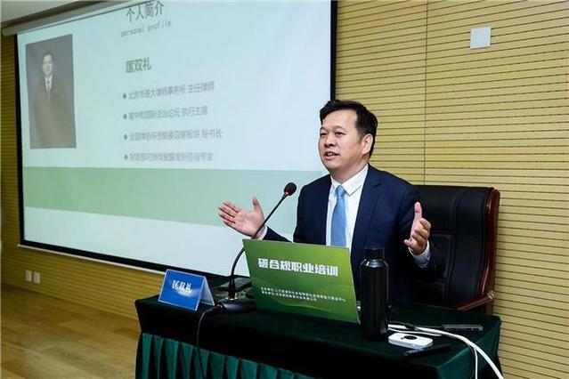 第八模块:碳合规相关法律诉讼,下午课程环节碳中和国际法治论坛执行主席、北京圣大律师事务所主任匡双礼则聚焦于碳合规领域的刑事诉讼、行政诉讼、民事诉讼和公益诉讼,以实际案例为镜,细解法律适用与应对策略。他全面审视政府、企业、中介、交易所等各方角色,明晰权责与违法代价,并从多元诉讼视角,系统全面的阐述了碳合规诉讼实践问题。