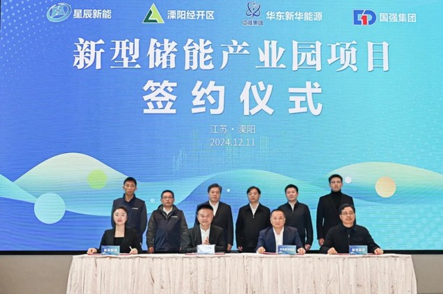 12月11日,江苏省溧阳经济开发区与华东新华(华东新华能源投资有限公司)、星辰新能(浙江星辰新能科技有限公司)、江苏国强(江苏国强兴晟能源科技股份有限公司)就江苏省溧阳经济开发区新型储能产业园项目签订战略合作协议。溧阳市市长周永强、副市长李韬出席签约仪式。