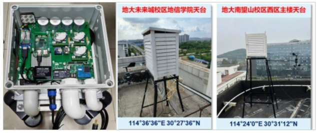 课题组自2022年起先后在地大未来城校区和南望山校区设置了基于非色散红外原理的微型化大气CO2浓度测量仪,并结合物联网技术进行全天候定位监测。通过这些仪器,课题组对武汉城市内部及边缘的CO2浓度和风速进行了持续观测,并使用搭载同类仪器的汽车进行移动观测,进一步提升了监测数据的覆盖广度和精度。研究初步结果显示,武汉市内的大气CO2浓度存在明显的昼夜变化和季节性波动,且受人为活动的影响显著,昼夜浓度呈现双峰形态。对武汉城市生态系统碳通量进行监测,将为城市碳减排政策的实施提供有力的科技支持,同时也为学院学生教学与培养提供了宝贵的实践平台。