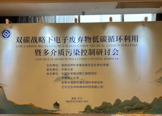 12月20日至22日,由国家自然科学基金委员会化学科学部主办,中南大学承办,中国科学院过程工程研究所、华南理工大学、生态环境部华南环境科学研究所、兰州兰石中科纳米科技有限公司协办的“双碳战略下电子废弃物低碳循环利用暨多介质污染控制研讨会”在长沙市顺利召开。中南大学教授、博士生导师、国家杰青、国家重金属污染防治工程技术研究中心常务副主任林璋担任大会主席,中南大学冶金与环境学院院长闵小波主持会议,冶金环境工程专家、中国工程院院士、中南大学冶金学院教授,中南大学党委常委、常务副校长柴立元致欢迎词。兰石中科董事、总经理康向京,公司总工程师侯晓刚,公司副总经理谢小明出席大会。