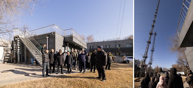 国家市场监督管理总局的党员们还参观了大气所所史展厅、全国野外台站分布沙盘及院士专家荣誉墙。随后步行来到铁塔分部实地参观,大气所重点实验室副主任孙业乐研究员向大家详细介绍了325米气象观测塔的建成历史、气象观测设备的运行原理和数据采集过程等知识。气象塔塔体上下具有大小相等的等边三角形截面,采用通风良好的格构式结构,有15层观测平台,每层装有测定风、温、湿等气象要素的传感器,可以获得15个不同高度上的观测数据。全天候、连续、同步、实时、精确,架设超声风速温度仪观测系统、7层湍流通量观测系统进行同步梯度采集。气象塔进行了四十年的连续观测,在北京大气污染研究中发挥无可替代的重要作用。