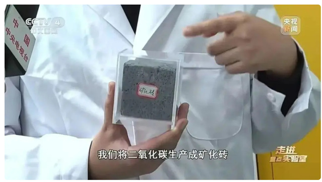 天府永兴实验室二氧化碳资源化利用研究中心副主任表示:“这个是我们和四川大学共同开发的二氧化碳矿化技术,我们利用粉煤灰脱硫渣等与二氧化碳反应,生产绿色建材。我们将二氧化碳生产成矿化砖,这样就给二氧化碳的利用找到了一个有经济效益的方式。”