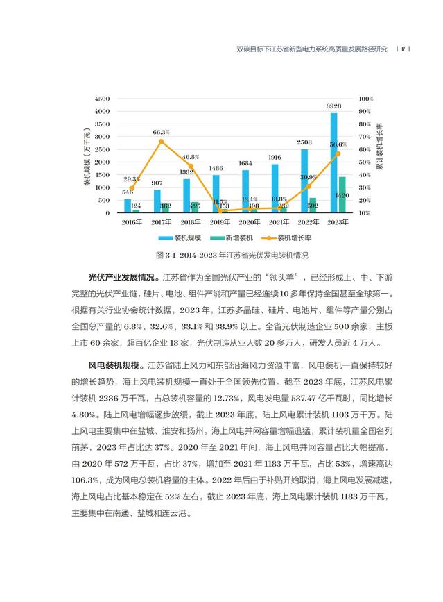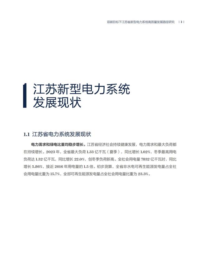 践行双碳战略,能源是主战场,电力是主力军,建设新型电力系统是电力领域攻坚新型能源体系的关键行动,新型电力系统建设对能源电力高质量发展十分关键。目前,江苏省可再生能源发电装机达41.1%,低于50%的全国平均水平,且产业结构偏重、能源结构偏煤、能源效率偏低,实现2030年非化石能源消费比重25%的目标任务艰巨。在此形势下,要处理好保障能源安全和绿色低碳转型之间的平衡,建立起既保障经济社会发展又促进新能源大规模增长和高比例利用的新型电力系统意义重大。