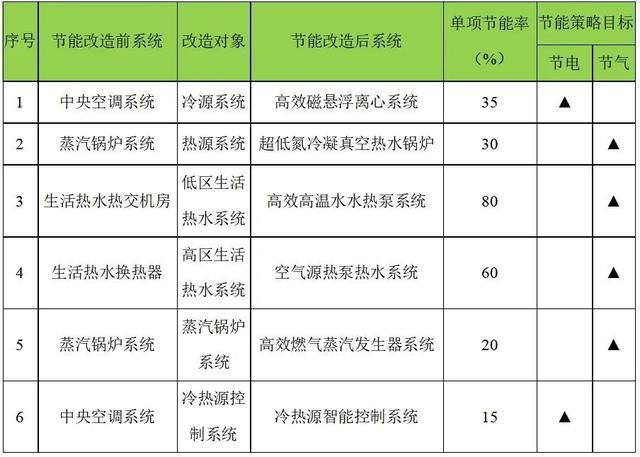 2、高质量既有建筑节能改造:上海宏安瑞士大酒店综合节能改造。上海宏安瑞士大酒店总建筑面积为55729.94㎡,酒店大型用能系统主要包括中央空调系统、蒸汽锅炉系统、生活热水系统、配电系统等。根据酒店用能系统的实际情况,采用6项节能改造措施: