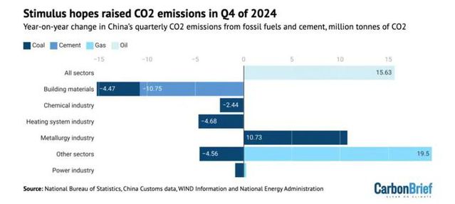 这导致 2024 年第一季度中国二氧化碳排放量增长 3.8%。