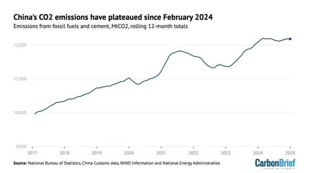 2024 年,清洁能源使用量激增,创下历史新高,致使中国在当年后10个月的二氧化碳排放量较去年同期有所下降。