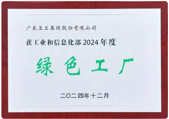 2025年1月23日,工业和信息化部公布了2024年度绿色制造名单,广东玉兰集团股份有限公司(股票简称:玉兰股份)凭借在绿色制造领域的全方位实践,成功斩获国家级“绿色工厂”称号。玉兰集团以“用地集约化、生产洁净化、废物资源化”等核心指标全面领先,成为广东省绿色转型的先锋力量。