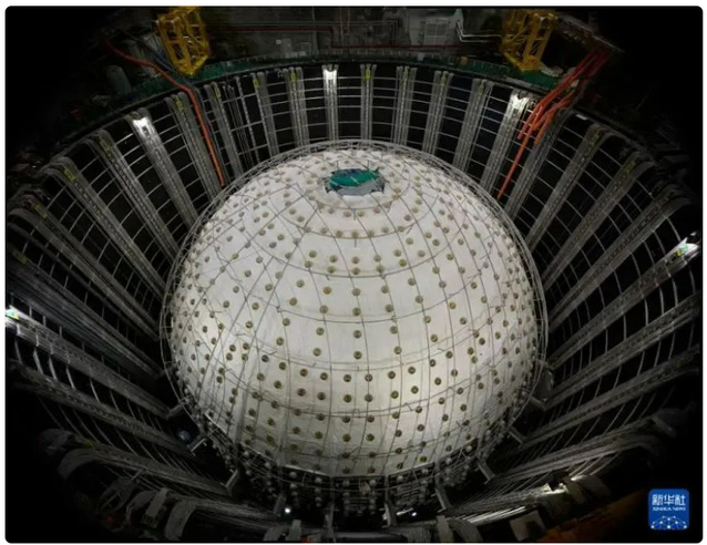 建设中的江门中微子实验中心探测器(拼接照片)。来源:新华社