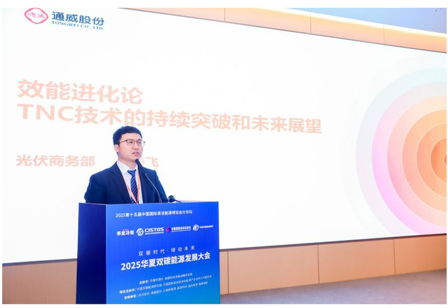 企业是市场参与的主体,创新为企业发展的灵魂。通威股份光伏商务部大客户技术服务总监何枭飞在“效能进化论:TNC 技术的持续突破与未来展望”的主题演讲中提到,“突破离不开创新,创新是突破的永恒动力。今年两会提到的科技创新与产业创新的融合,其本质上是将科学技术的创新突破转化为实际的生产力。对光伏组件领域来讲,就是要做可量产的创新技术。从这个角度出发,就是要做市场主流产品的创新技术,才可以推动整个产业进步,为3060目标的实现持续提供新质生产力。
