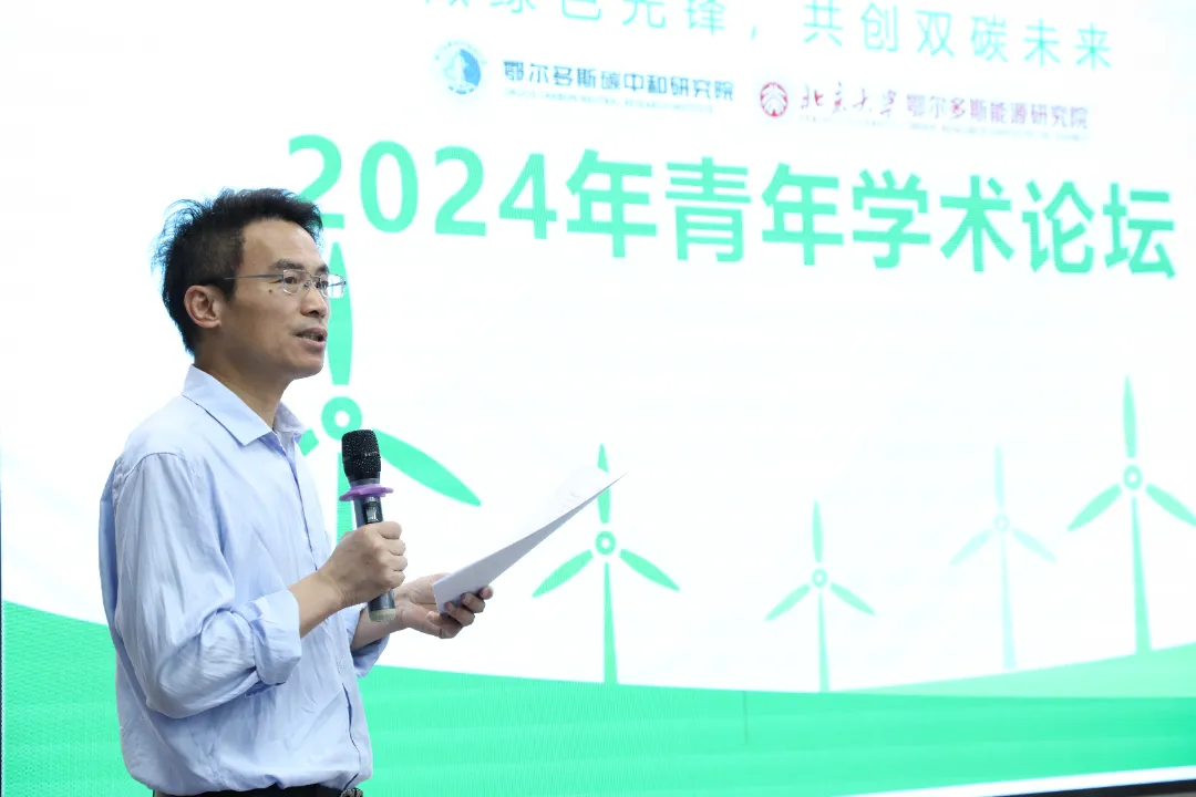 6月14日,由鄂尔多斯碳中和研究院与北京大学鄂尔多斯能源研究院联合举办的青年学术论坛在碳中和研究院成功召开。论坛以“争做绿色先锋 共创双碳未来”为主题,旨在增强青年科技工作者在双碳领域的学术交流与互动,激发创新活力,提升学术素养,培育新一代青年人才,为推动双碳目标的实现贡献青年力量。鄂尔多斯碳中和研究院院长王明培主持,鄂尔多斯市科技局副局长王蕾,北京大学鄂尔多斯能源研究院常务副院长马开华及相关专家受邀出席。