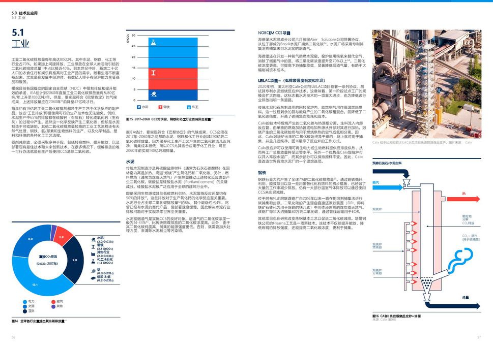 由于其工艺特性和高温热处理要求,水泥、钢铁和化工行业排放大量二氧化碳,且属于最难脱碳的行业。能源转型委员会和国际能源署(IEA)等数家机构所发布的多份报告都得出一致结论,即如果不采用CCS,这些行业几乎不可能实现净零排放,且无论如何也逃不过成本升高的结局。对于减排难度较大的行业来说,CCS是最成熟、成本效益最好的选择。