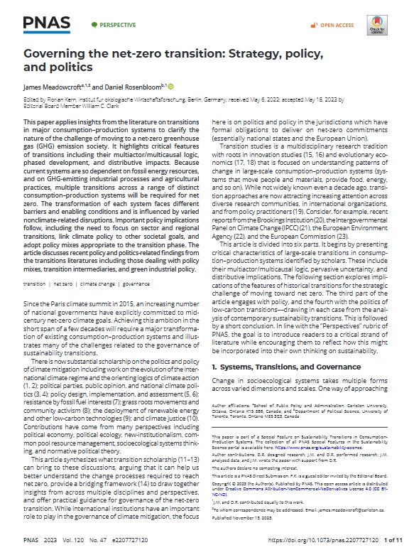 本文应用了有关过渡的文献中的见解在主要消费-生产系统中,澄清转向净零温室的挑战的性质气体(GHG)排放协会。它突出了关键功能的转换,包括它们的多角色/多因果逻辑,分阶段发展和分配影响。因为目前的系统非常依赖化石能源,以及温室气体排放的工业过程和农业实践,跨越一系列不同的多重过渡净消费-生产系统将需要零。每个系统的转型面临不同的面貌障碍和有利条件,并受到各种因素的影响与气候无关的干扰。重要的政策影响紧随其后,包括需要关注部门和区域转型,将气候政策与其他社会目标联系起来,以及采用适合过渡阶段的政策组合。