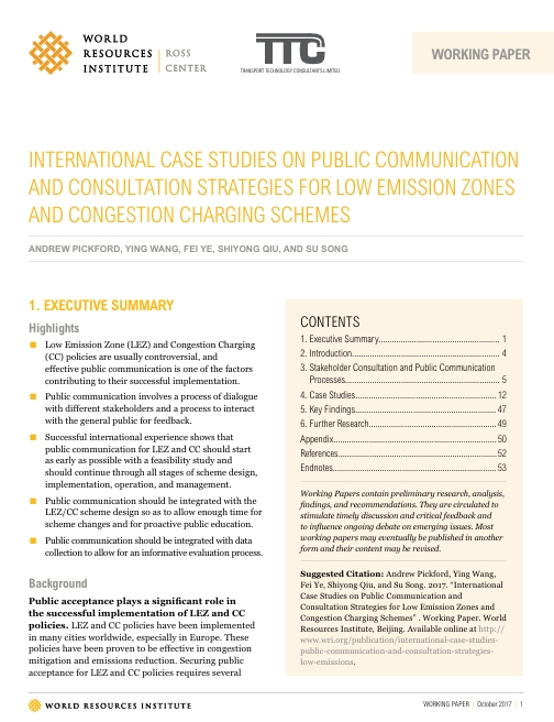 该工作文件将是“低排放区/拥堵费(LEZ/CC)公共传播策略”系列文件的一部分,旨在提供全面的一揽子公共传播策略,以保障成功实施。这是该系列的第一篇论文,研究了来自欧洲、亚洲和美国的 10 个案例,以突出规划和实施 CC 和 LEZ 计划的各种社会、政治和环境背景。从所研究的例子中,确定了两种类型的咨询过程;科学/专业和咨询/政治。所有国际案例研究都强调了公共传播是如何融入政策制定过程的,而政策制定过程本身可以分为两个阶段:综合交通包内的低排放区或CC的“内部”和“外部”。
