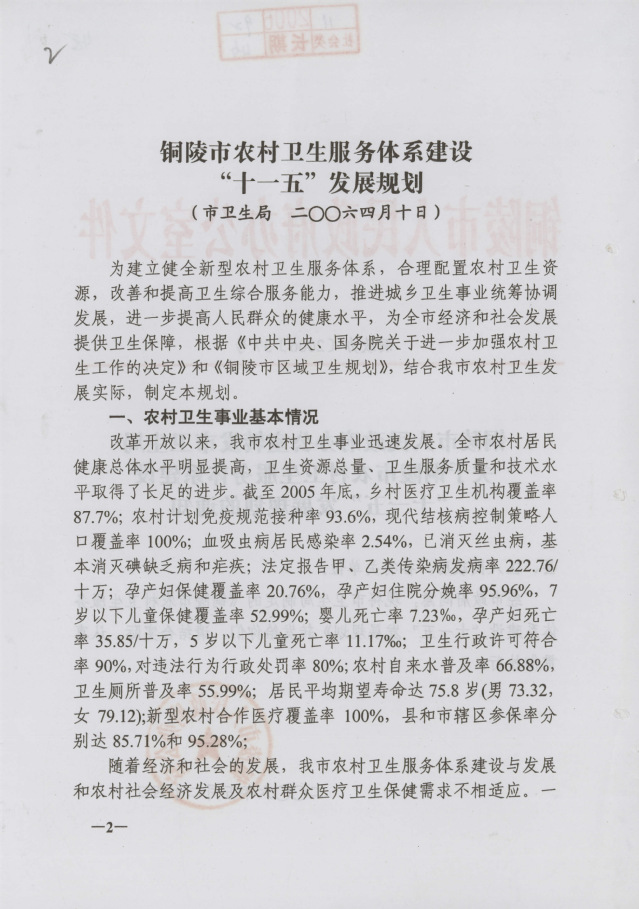 铜陵市农村卫生服务体系建设“十一五”发展规划
