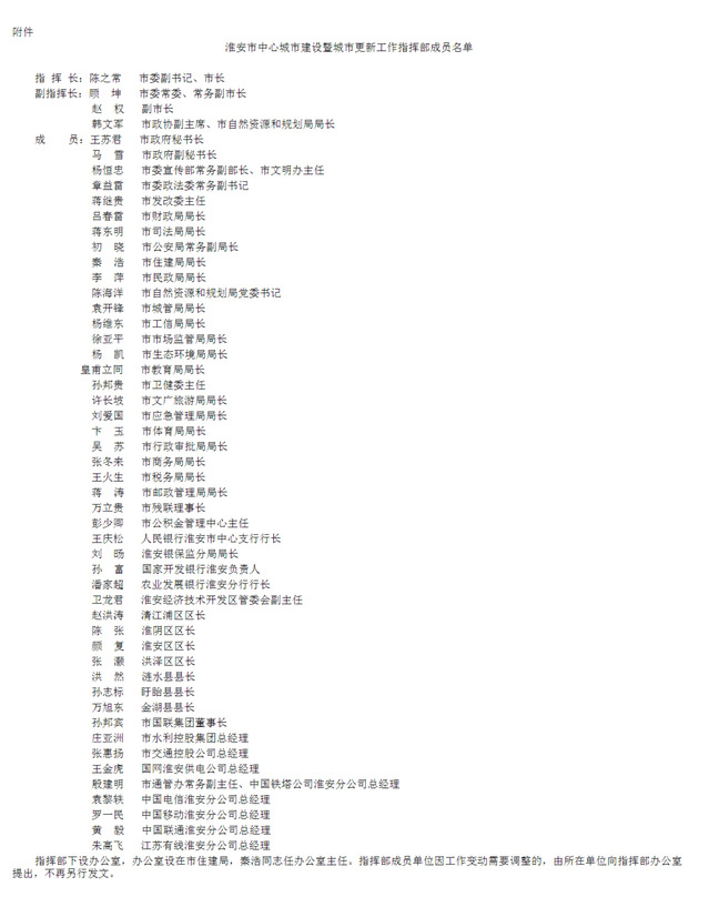 附件:淮安市中心城市建设暨城市更新工作指挥部成员名单