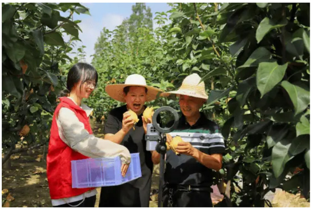 此外,大学生新农人也已成为乡村振兴的一支新兴力量。2023年8月2日,江苏大学马克思主义学院“拾遗亦识遗”实践团队成员来到常州市武进区华阳村开展三下乡社会实践。活动中,团队成员通过助农与非遗共融的形式分别于果园与直播间开展了两场生动活泼的“助农直播”实践活动,将富有地域特色的阳湖水蜜桃、焦溪蜜梨等多种当地水果介绍给网友,并为网友普及常州梨膏糖制作技艺等非物质文化遗产,让更多人感受传统非遗的魅力,为推进乡村振兴注入青春力量。