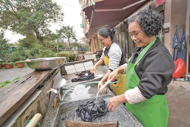 鹿西岛居民用自来水冲洗衣服。新华网发 苏巧将 摄
