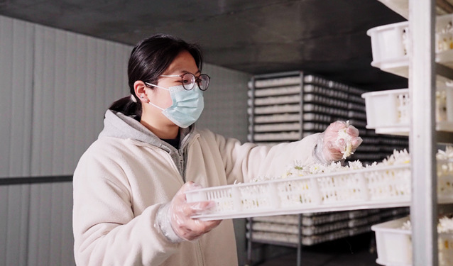 在当地政府的支持下,村里建起了400平方米的标准化厂房,收获的新鲜滁菊,一部分外销鲜花,一部分就地送至滁菊烘焙车间进行烘干处理和加工包装,利用“线上+线下”的销售模式,销往全国各地,延长了产业链,提升了产品附加值。