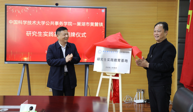 座谈会上举行了公共事务学院黄麓镇政府研究生实践教育基地揭牌仪式,丁望斌与韩斌一起为实践基地揭牌。未来,公共事务学院将以实践教育基地为纽带,持续开展与巢湖市的深度合作。