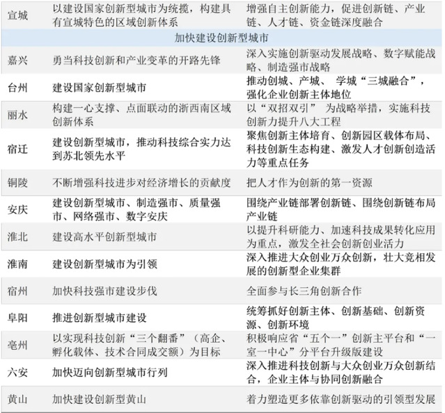 苏州、芜湖专注科研成果转化体系建设,强调产业转化上海、合肥的科创成果,符合两地战略强调产业链创新的战略定位。41城“十四五”规划中(参见附表1),苏州主要通过加快培育高端产业创新平台,打造具有全球影响力的综合性产业科技创新高地。芜湖以“鸠兹科创湾”建设为抓手,争创综合性国家产业创新中心、国家技术创新中心。