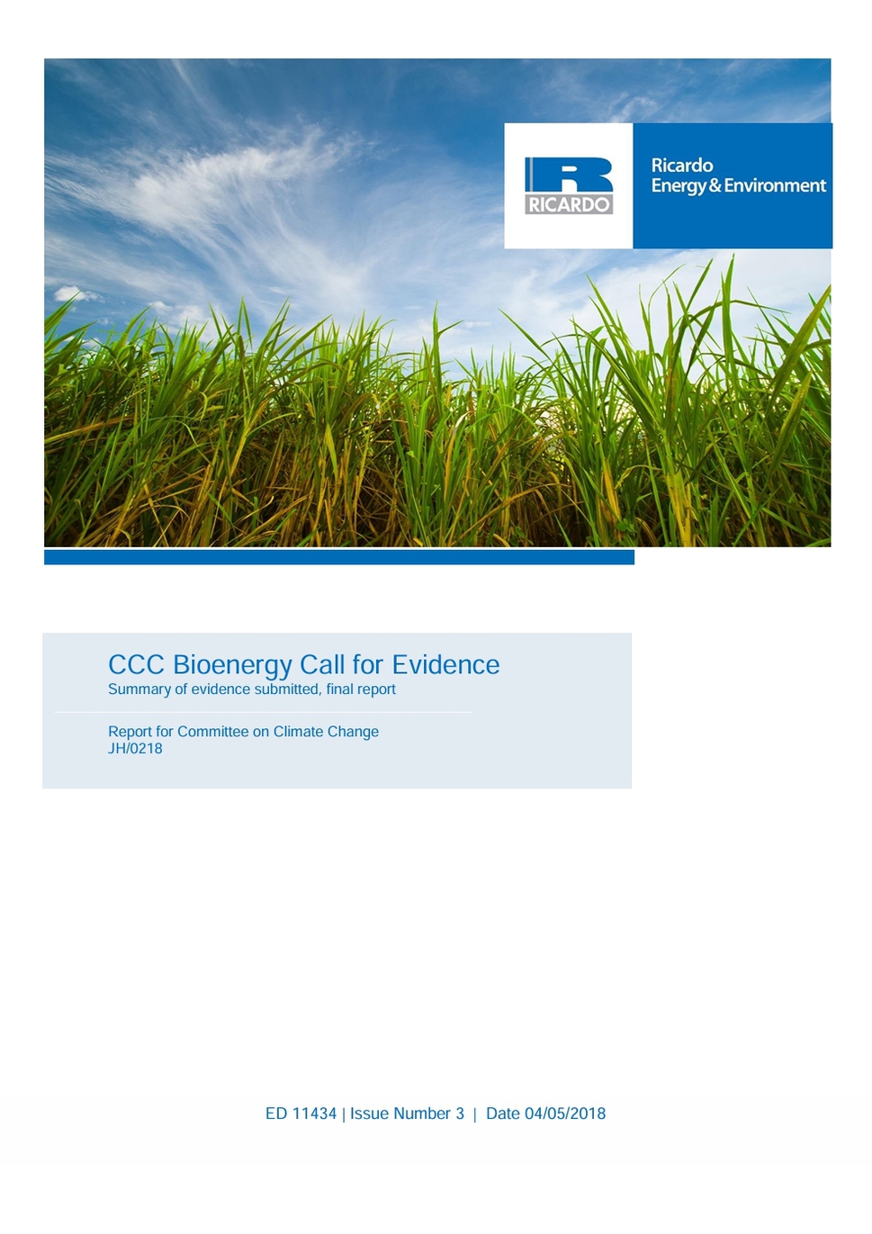 这份报告由里卡多能源与环境公司撰写,总结了气候变化委员会在 2017 年底和 2018 年初为低碳经济报告中生物质能提供信息而开展的征集证据征集所收到的回应。