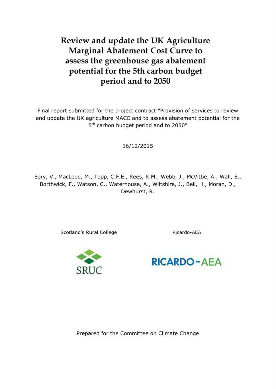 本研究的目的是为英国农业、土地利用和土地利用变化部门制定更新的边际减排成本曲线 (MACC)。