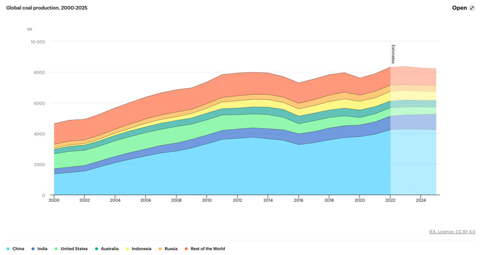 中国和印度是世界上最大的煤炭消费国,也是最大的煤炭生产国,此外也是最大的两个煤炭进口国。为了应对价格上涨和供应短缺,2021年夏季后,中国和印度推动了国内煤炭产量的增长。中国煤炭产量全年预计增长8%,减少了进口需求。在印度,政府长期以来一直试图提高煤炭产量以减少进口。2021年,印度煤炭产量首次达到8亿吨。预计2025年印度的产量将超过10亿吨。作为世界第三大煤炭生产国,印度尼西亚也有望在2022年产量也将创新高。2022年全球煤炭产量将升至80亿吨以上,这是有史以来的最高水平。