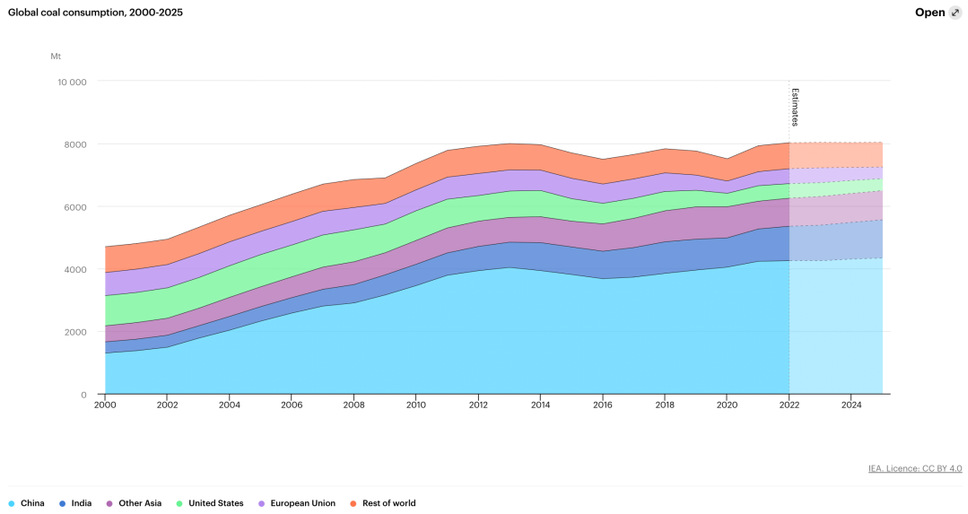 中国的经济复苏很可能对全球煤炭需求前景产生最大影响,因为中国占全球煤炭需求的一半以上。仅中国电力部门就占全球煤炭消费量的三分之一。2021年,中国煤炭消费量强劲增长。但预计到2025年,增长将保持相对停滞,年均增长0.7%,这主要是因为可再生能源发电量的增加。在2022-2025年期间,我们预计中国的可再生能源发电量将增加近1000太瓦时,相当于当今日本的总发电量。与此同时,自2007年以来,印度的煤炭消费量翻了一番,年增长率为6%,并将继续成为全球煤炭需求的增长引擎。