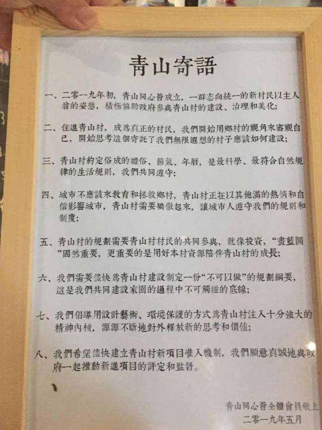 但是,中国之大,许多村庄都有青山绿水、大片的农田、传统的建筑、淳朴的民风、宜居的环境,为什么偏偏青山村能让我们惊讶?因为这里有一群外来的年轻村民,他们创新的不仅仅经济发展和生态保护模式,还有基层治理模式,青山村未来乡村联合工作坊、青山同心荟就是新老村民参与村庄建设的创新组织。在这些组织里,村民可以和当地政府以及企业进行民主协商,共同参与村子的建设。